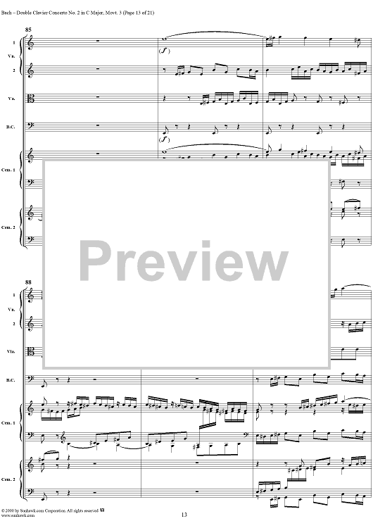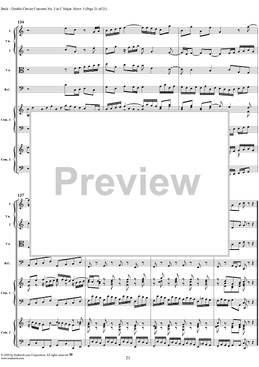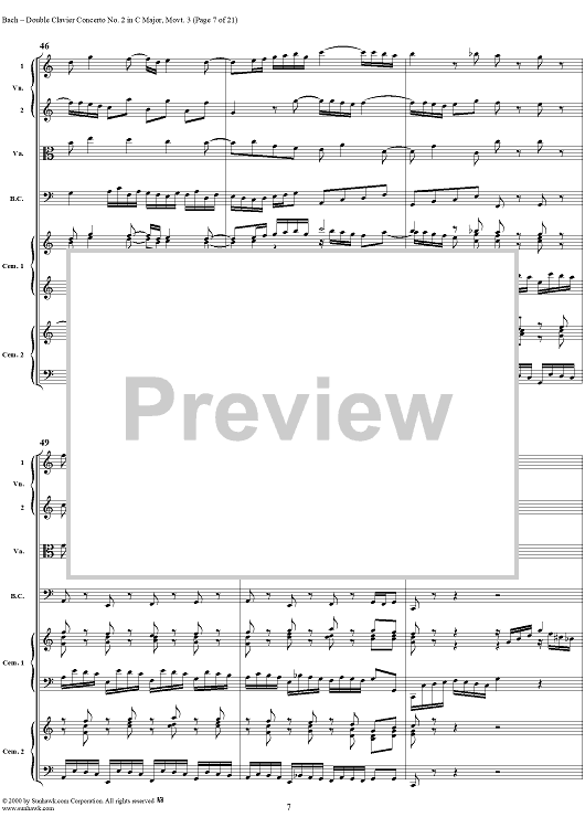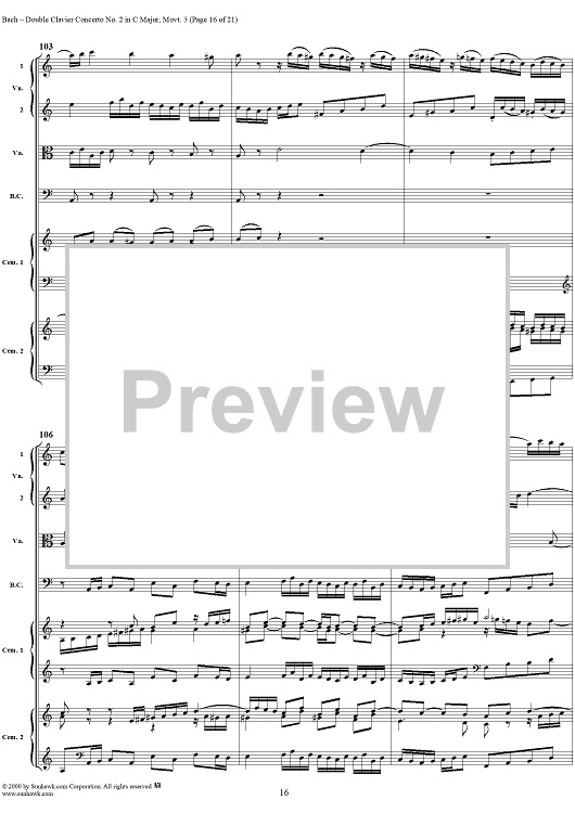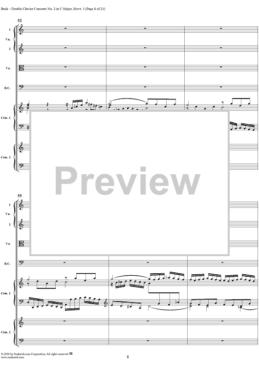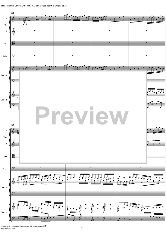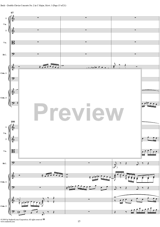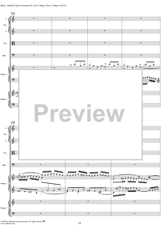 Digital Sheet Music for Double Clavier Concerto No. 2 in C Major, Movement 3 (BWV 1061) - Score by Johann Sebastian Bach scored for 2 Pianos/Strings; id:241448
