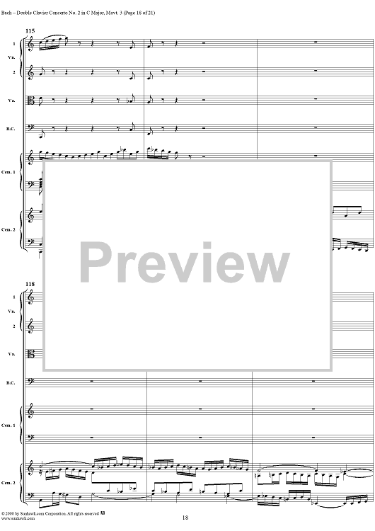 "Double Clavier Concerto No. 2 in C Major, Movement 3 (BWV 1061) - Score" Sheet Music by Johann Sebastian Bach