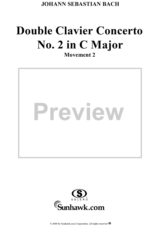 "Double Clavier Concerto No. 2 in C major, movt. 2 - BWV1061" Sheet Music by Johann Sebastian Bach