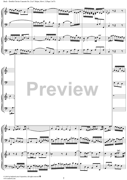 Digital Sheet Music for Double Clavier Concerto No. 2 in C major, movt. 2 - BWV1061 by Johann Sebastian Bach scored for 2 Pianos/Strings; id:276416