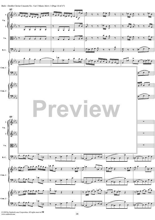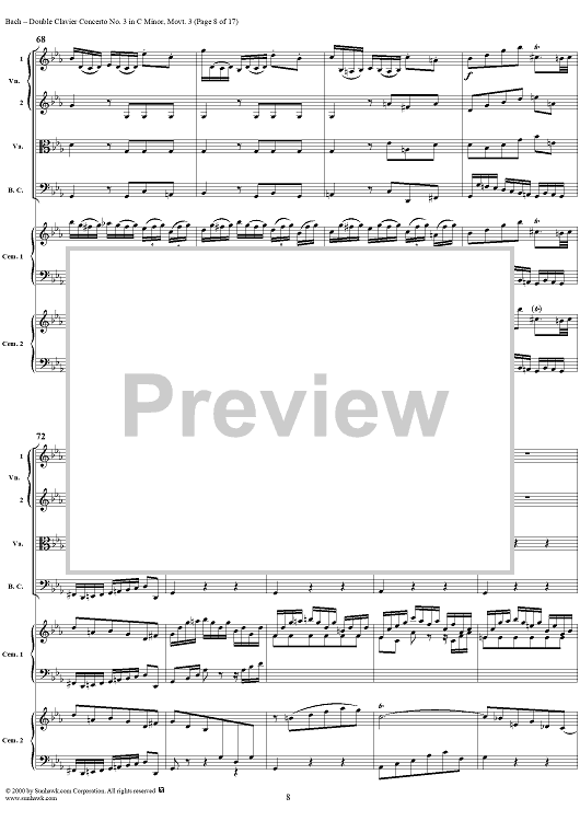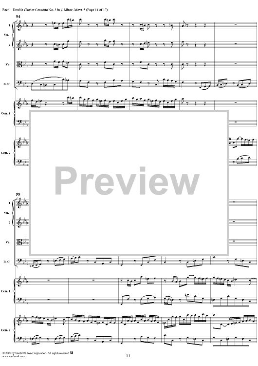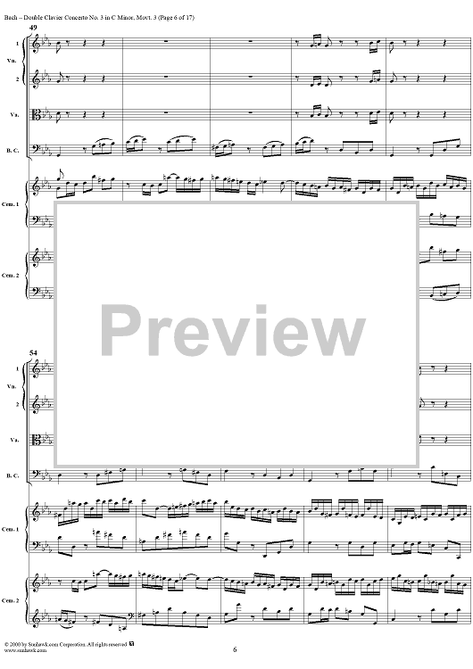 Digital Sheet Music for Double Clavier Concerto No. 3 in C Minor, Movement 3 (BWV 1062) - Score by Johann Sebastian Bach scored for 2 Pianos/Strings; id:241453