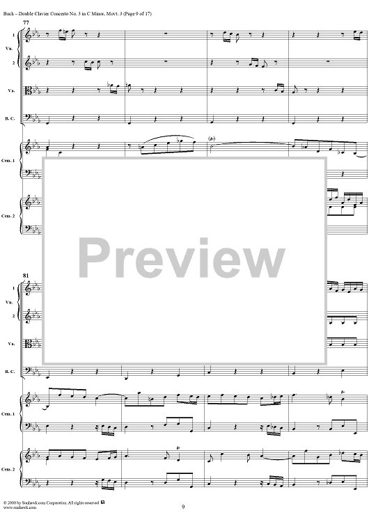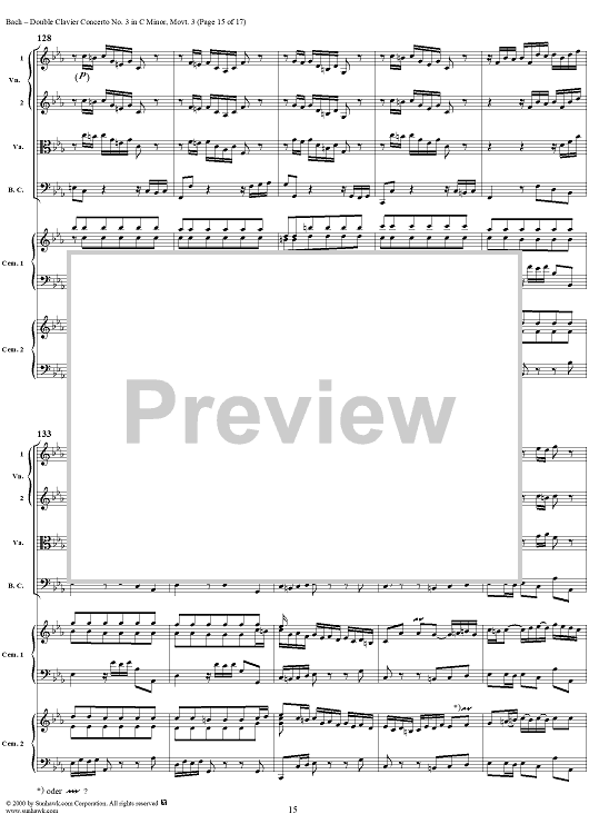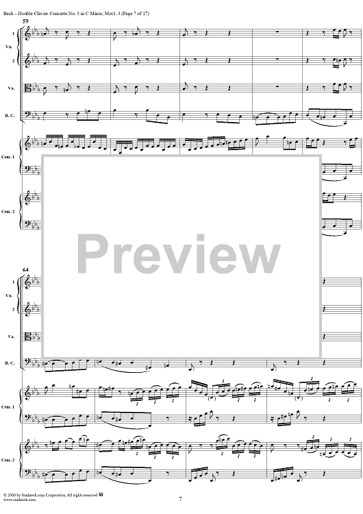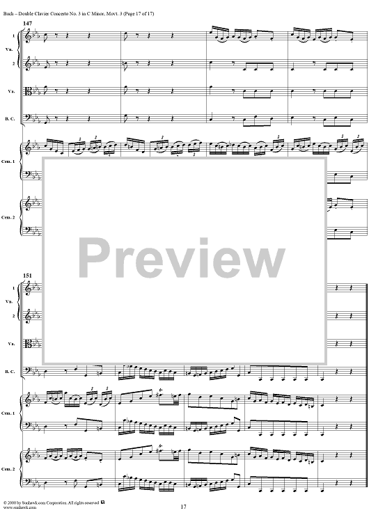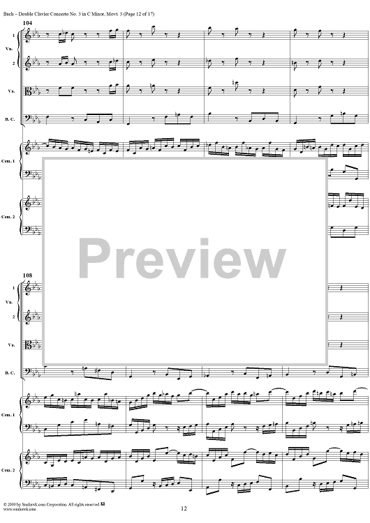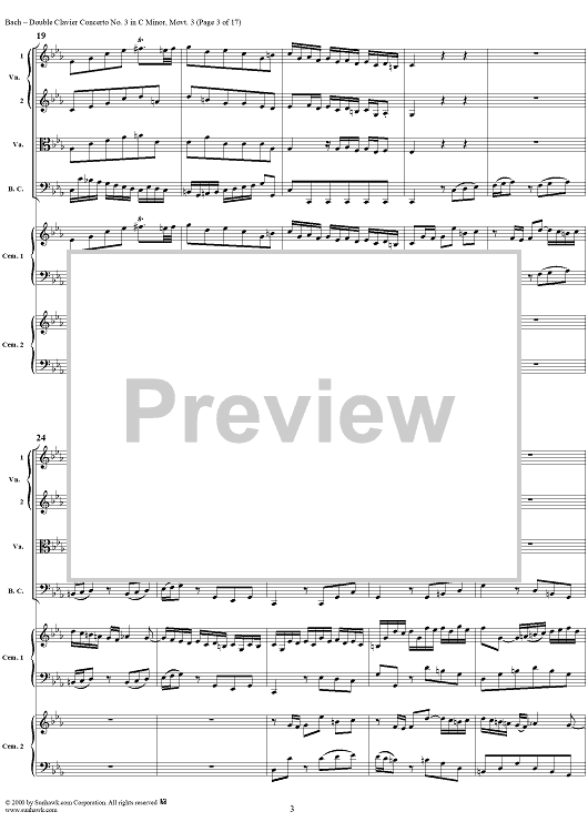 "Double Clavier Concerto No. 3 in C Minor, Movement 3 (BWV 1062) - Score" Sheet Music by Johann Sebastian Bach