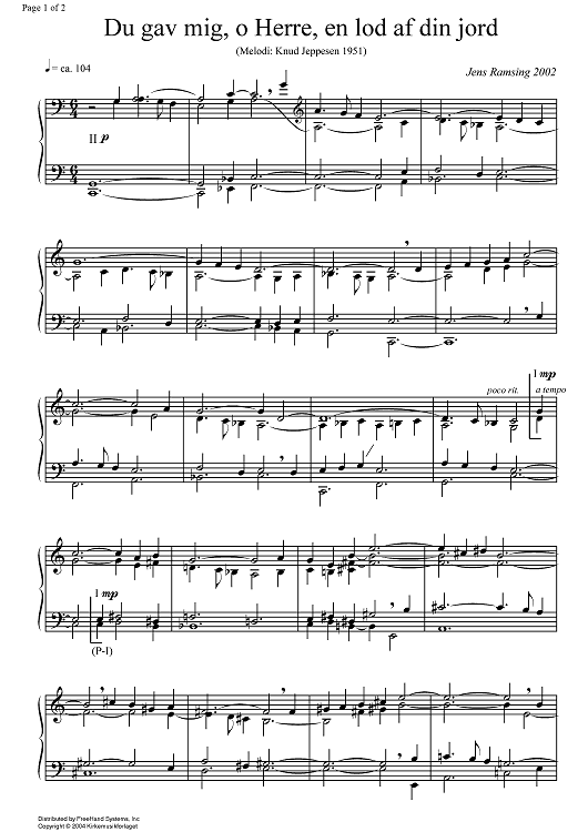 "Du gav mig, o Herre, en lod af din jord (Prelude)" Sheet Music by Jens Ramsing