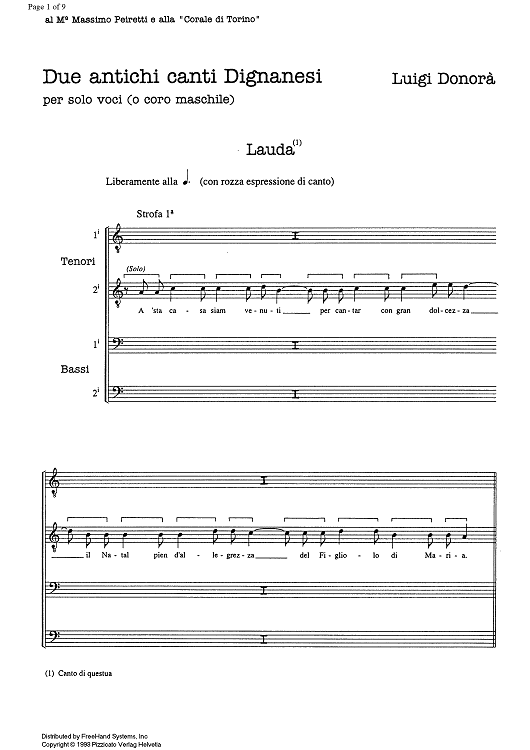Digital Sheet Music for Due antichi canti Dignanesi by , Luigi Donorà scored for Male Choir; id:334470
