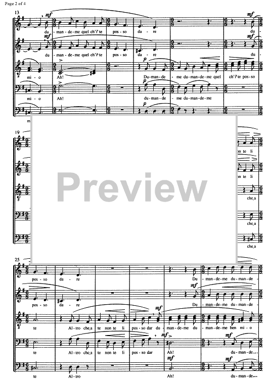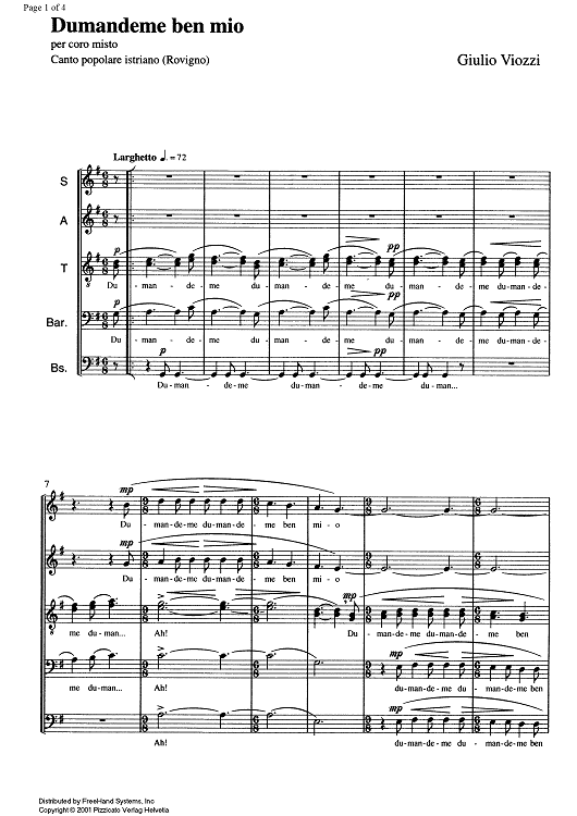 Digital Sheet Music for Dumandeme ben mio by , Giulio Viozzi scored for Five-part Mixed Chorus; id:349710