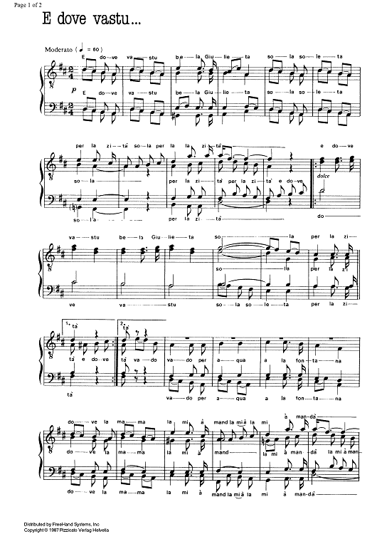 "E dove vastu" Sheet Music by Daniele Zanettovich
