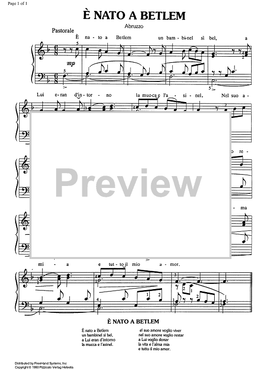 Digital Sheet Music for È nato a Betlem (Abruzzo) by Enrico Battistoni, Traditional scored for Piano/Vocal; id:329286