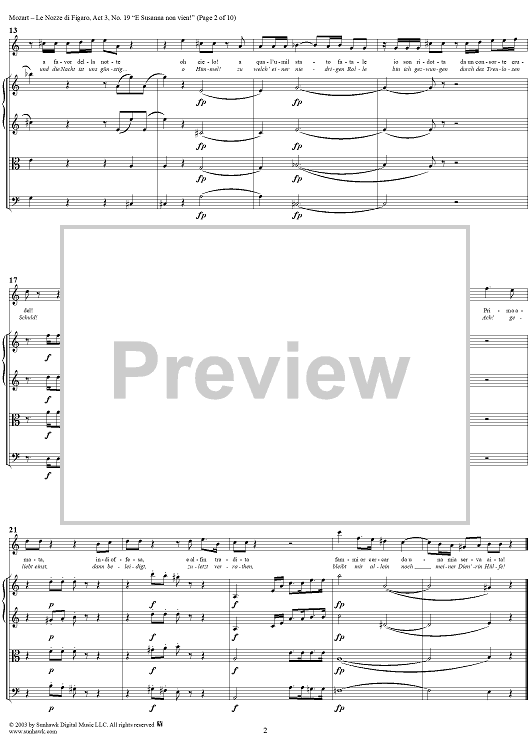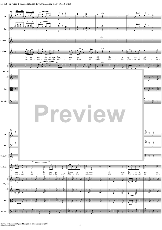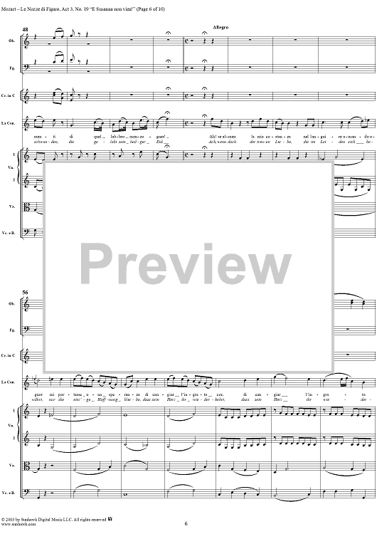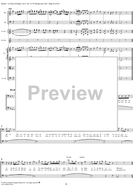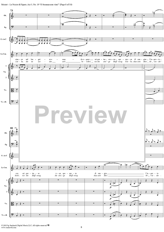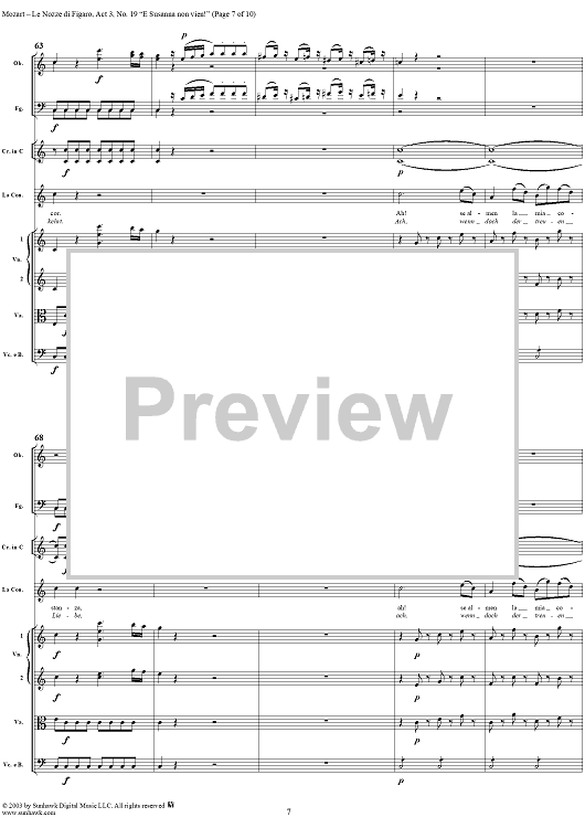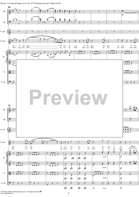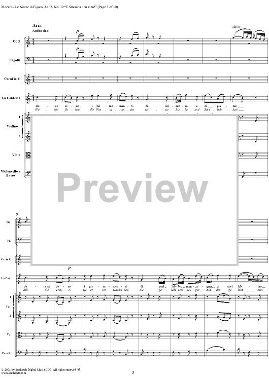 Digital Sheet Music for "E Susanna non vien!", No. 19 from "Le Nozze di Figaro", Act 3, K492 - Full Score by Wolfgang Amadeus Mozart scored for Voice and Orchestra; id:292215