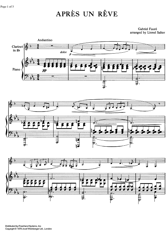 Digital Sheet Music for Easy 2/3 - Après un Rêve by Gabriel Fauré, Lionel Salter scored for Clarinet/Piano; id:332662