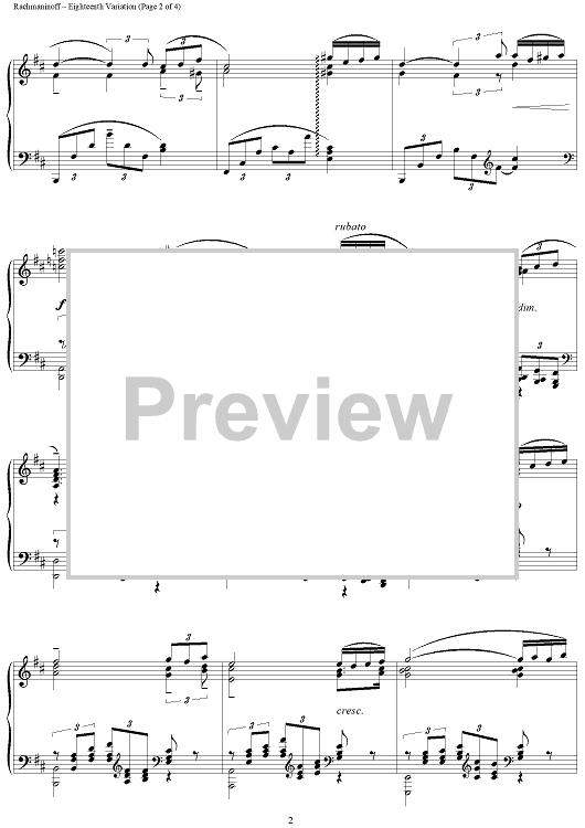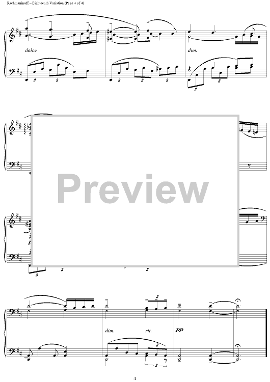 Digital Sheet Music for Eighteenth Variation from "Rhapsody on a Theme of Paganini" by Hermene W. Eichorn, Sergei Rachmaninoff scored for Piano Solo; id:113763
