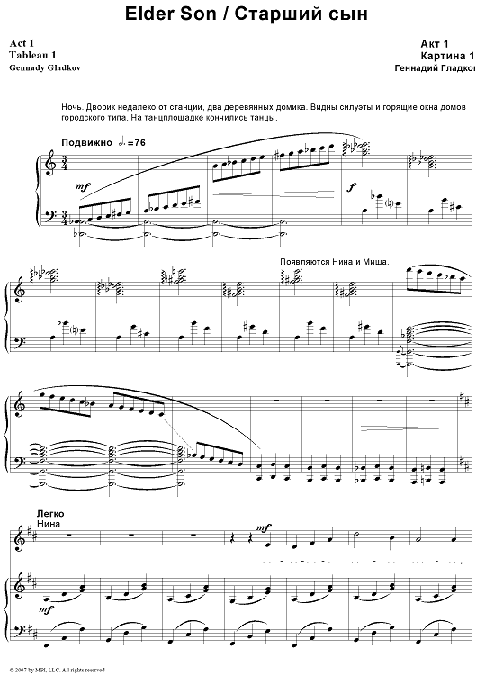 "Elder Son. Act 1. Tableau 1" Sheet Music by Gennady Gladkov