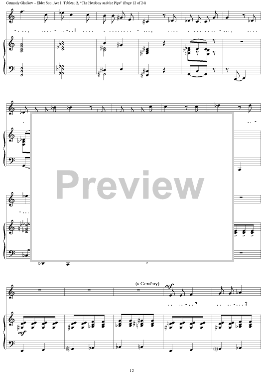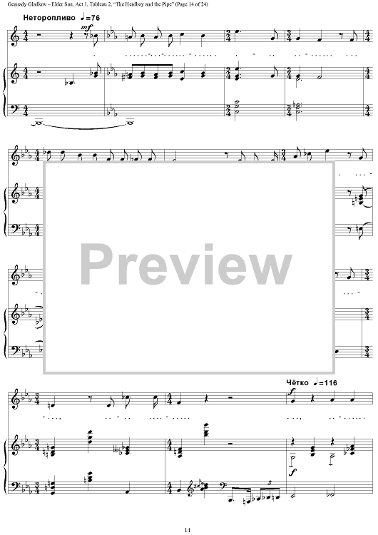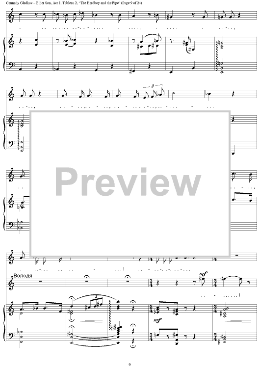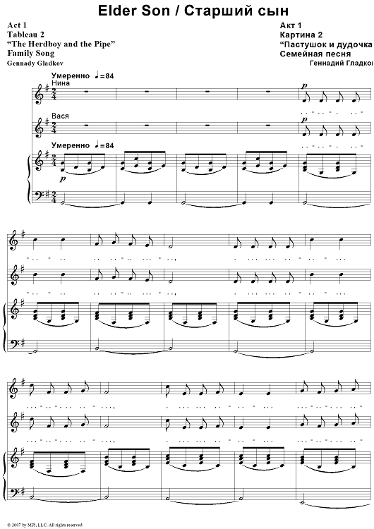 "Elder Son. Act 1. Tableau 2. “The Herdboy and the Pipe”" Sheet Music by Gennady Gladkov
