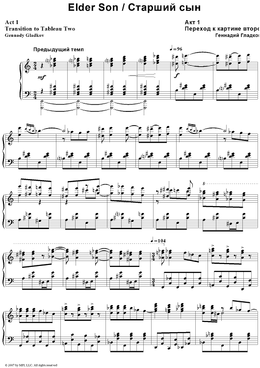"Elder Son. Act 1. Transition to Tableau Two" Sheet Music by Gennady Gladkov