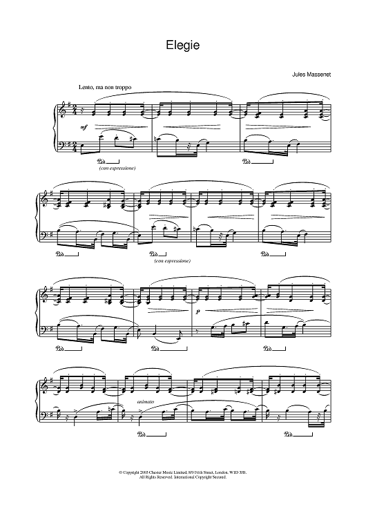 Digital Sheet Music for Elegie by Jules Massenet scored for Piano; id:377870
