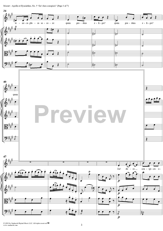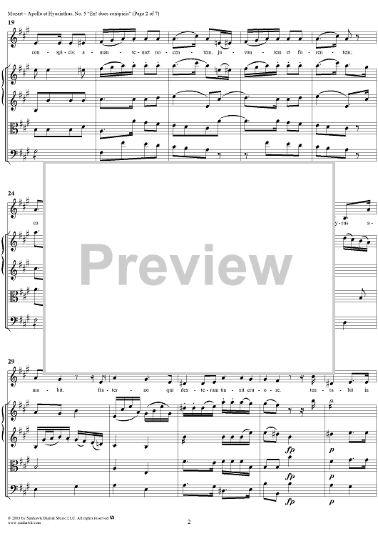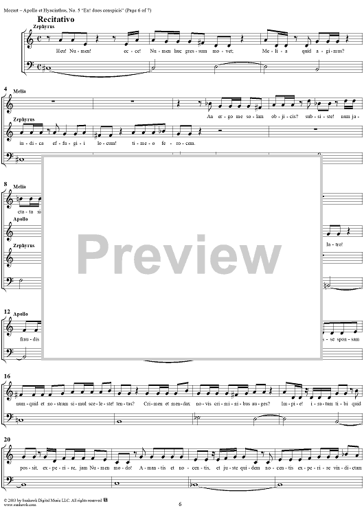 Digital Sheet Music for "En! duos conspicis", No. 5 from "Apollo et Hyacinthus" (K38) - Full Score by Wolfgang Amadeus Mozart scored for Voice and Orchestra; id:291762