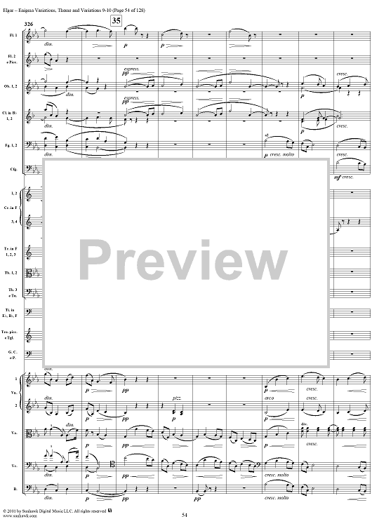 Digital Sheet Music for Enigma Variations, Op. 36: Nos. 9-10 by Edward Elgar scored for Orchestra; id:321643