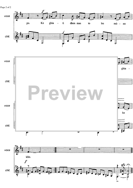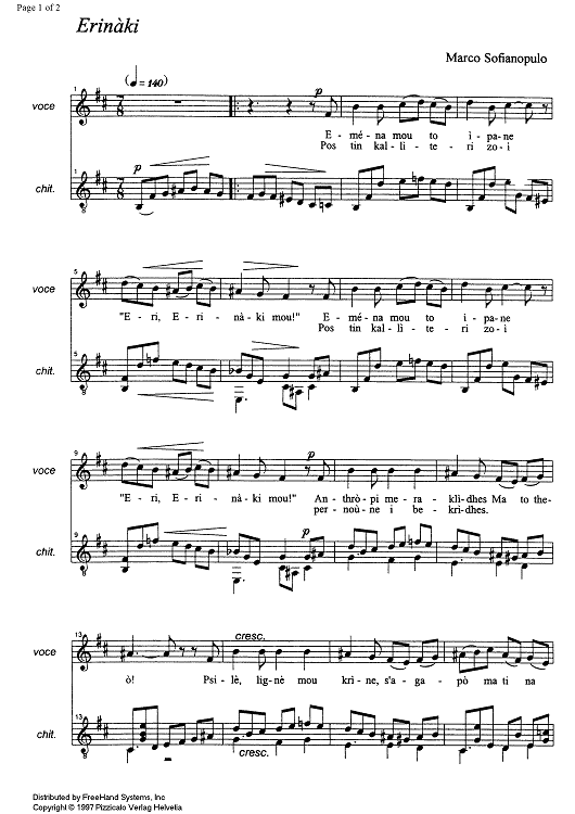 Digital Sheet Music for Erinàki by Marco Sofianopulo scored for Voice/Guitar; id:330516