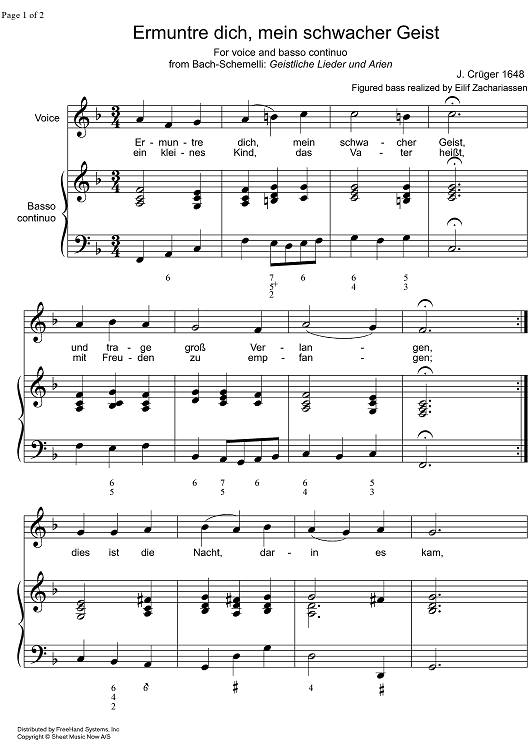 Digital Sheet Music for Ermuntre dich, mein schwacher Geist by Johann Crüger, Eilif Zachariassen scored for Voice/Continuo; id:325903