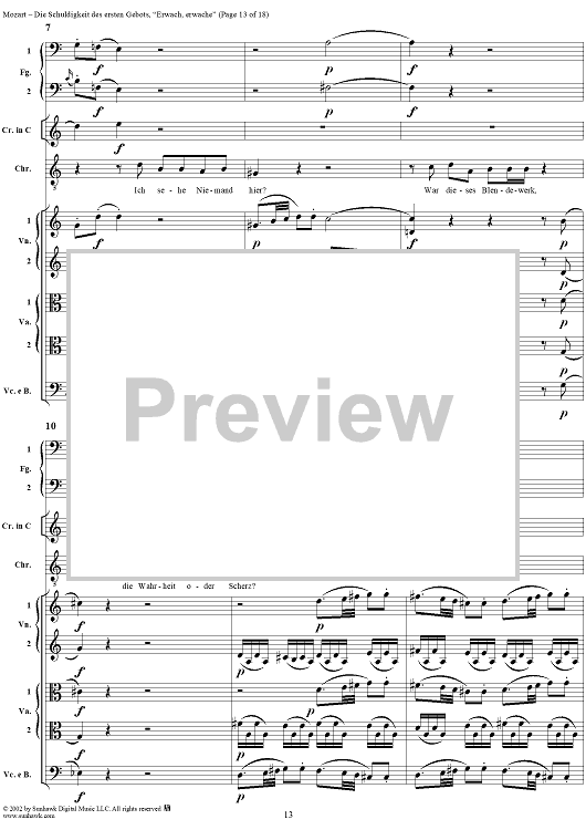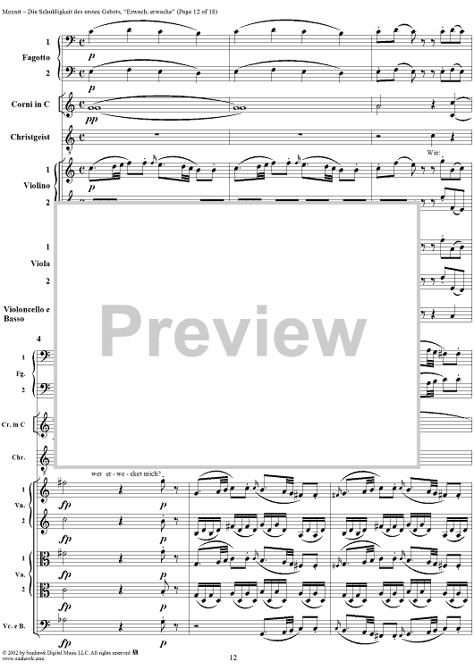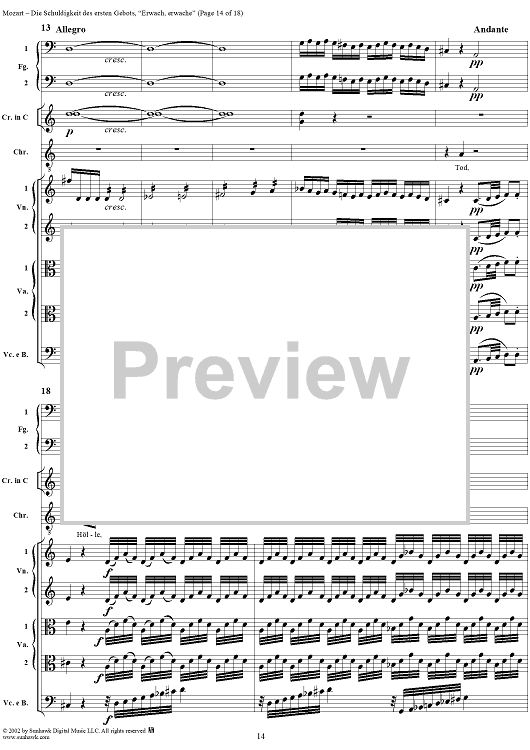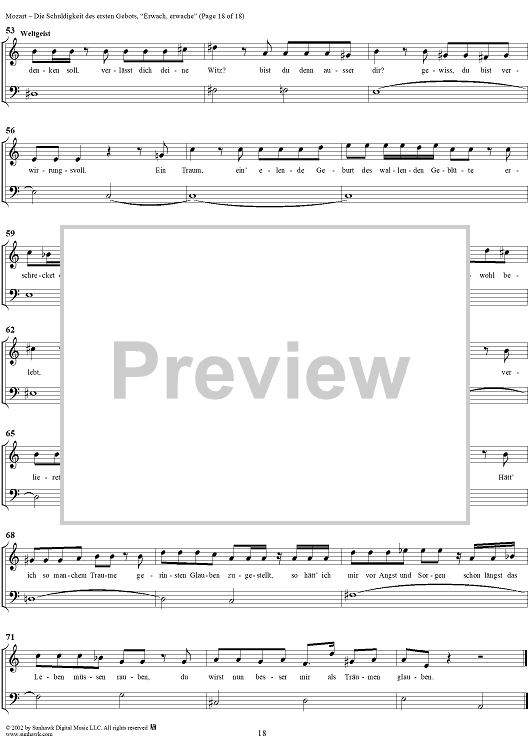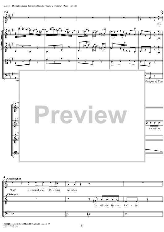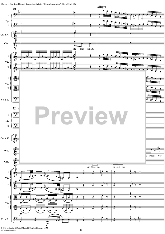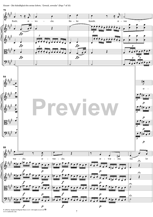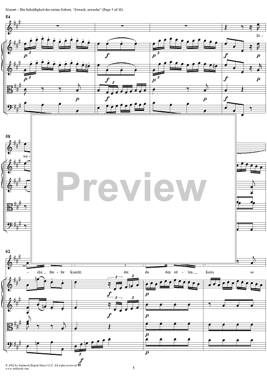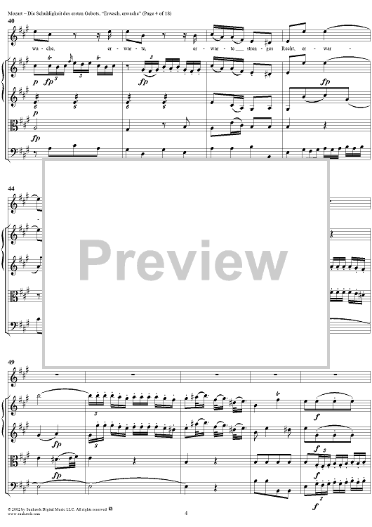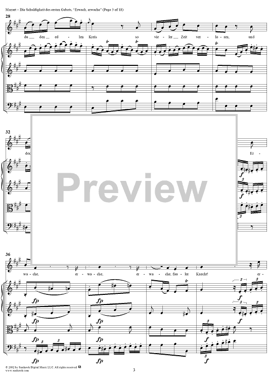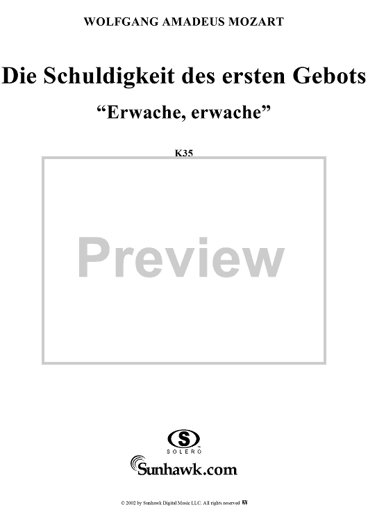 Digital Sheet Music for "Erwache, erwache", No. 3 from "Die Schuldigkeit des ersten Gebotes", K35 - Full Score by Wolfgang Amadeus Mozart scored for Voice and Orchestra; id:291704
