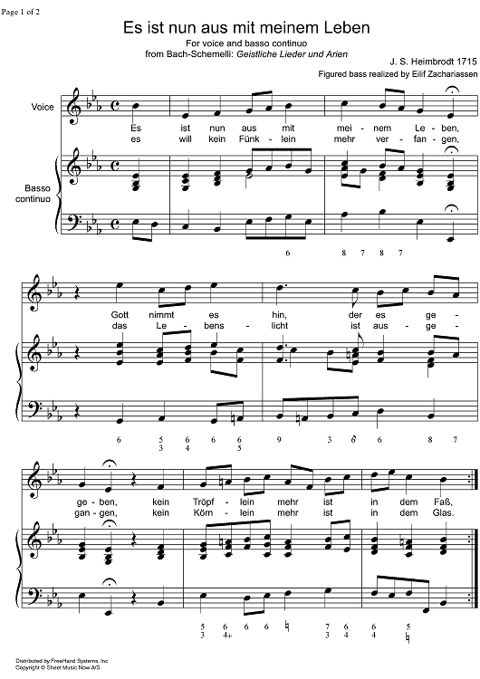 Digital Sheet Music for Es ist nun aus mit meinem Leben by J.S. Heimbrodt, Eilif Zachariassen scored for Voice/Continuo; id:325926