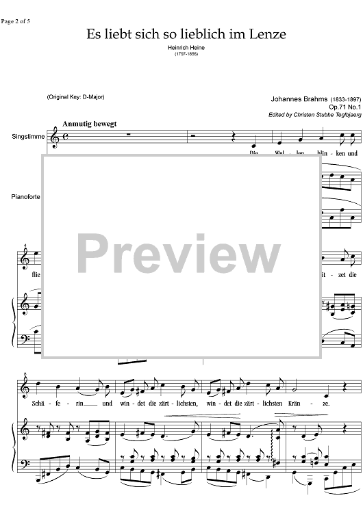 Digital Sheet Music for Es liebt sich so lieblich im Lenze Op.71 No. 1 by , Johannes Brahms scored for Mezzo-soprano or Baritone/Piano; id:336927