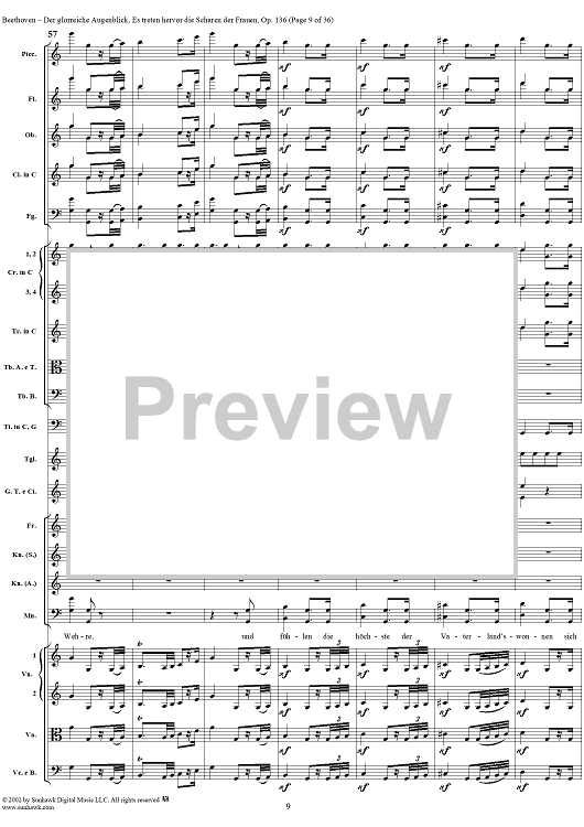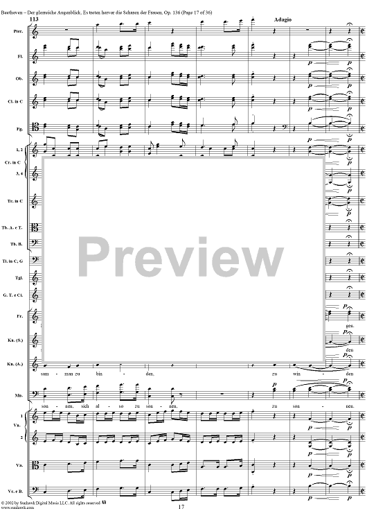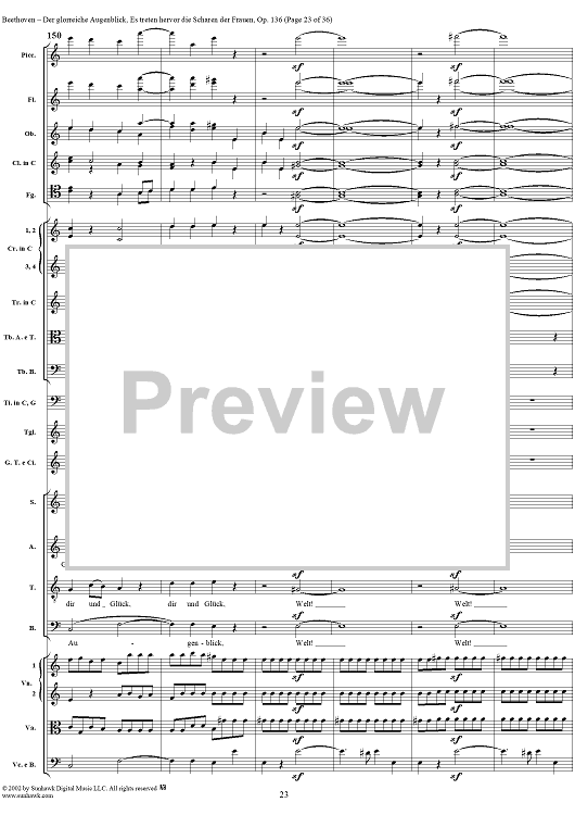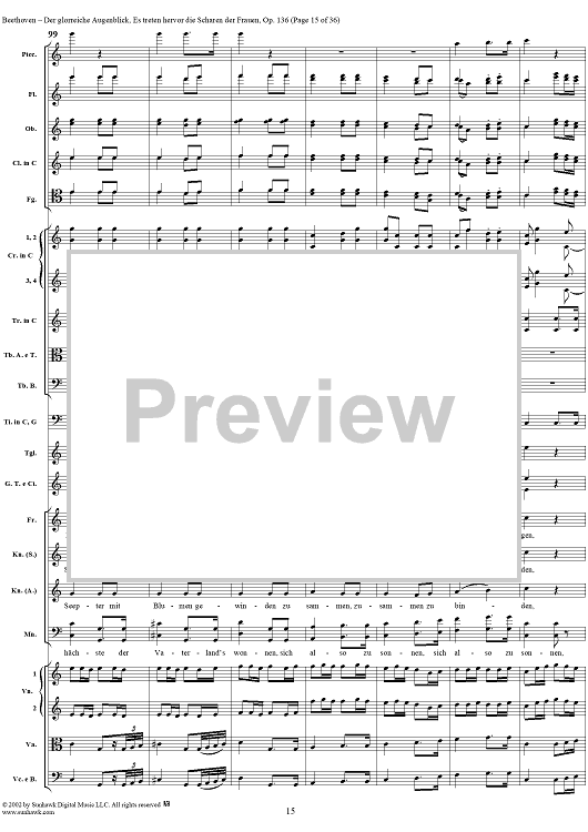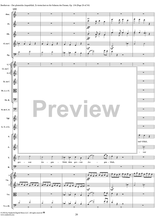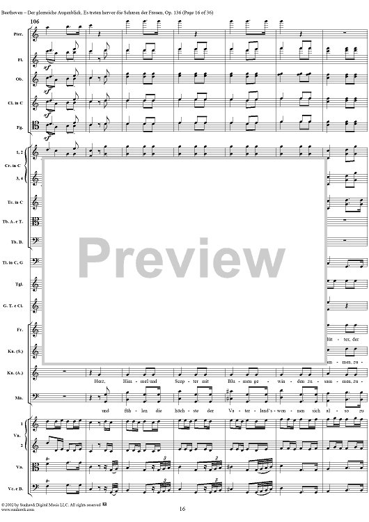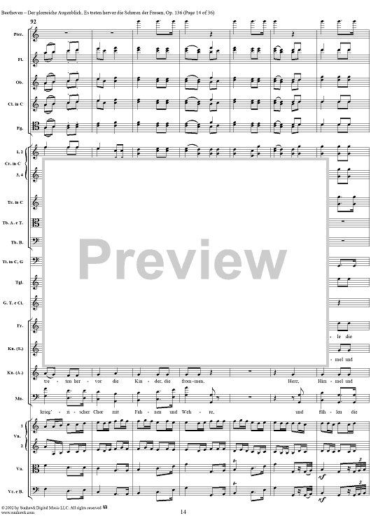 Digital Sheet Music for Es treten hervor die Scharen der Frauen, No. 6 from "Der glorreiche Augenblick", Op. 136 - Full Score by Ludwig van Beethoven scored for Chorus and Orchestra; id:290919