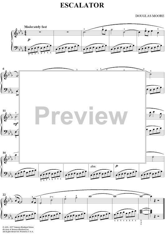 Digital Sheet Music for Escalator by , Douglas Moore scored for Piano Solo; id:287684