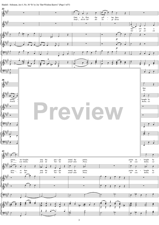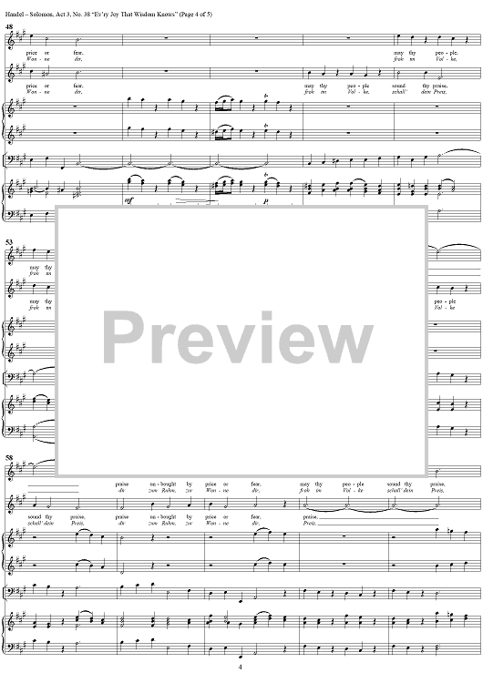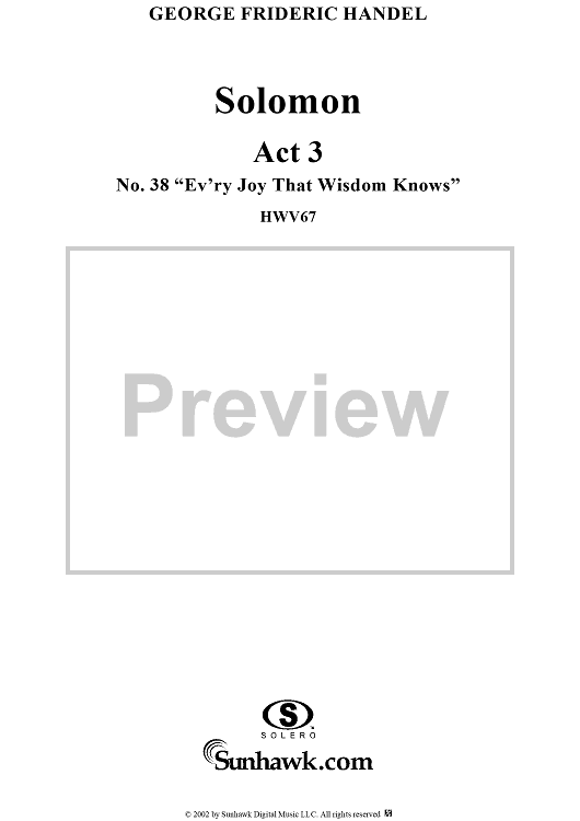 Digital Sheet Music for Ev'ry joy that wisdom knows, No. 38 from Oratorio "Solomon", Act 3 (HWV67) by George Frideric Handel scored for Soli/SATB/Orchestra; id:290427