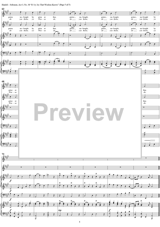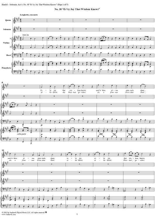 "Ev'ry joy that wisdom knows, No. 38 from Oratorio "Solomon", Act 3 (HWV67)" Sheet Music by George Frideric Handel