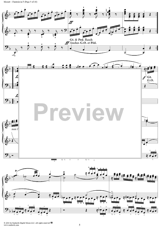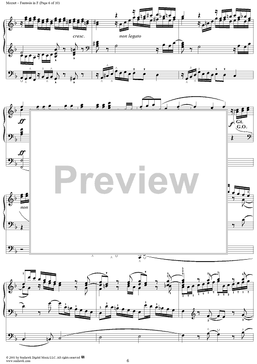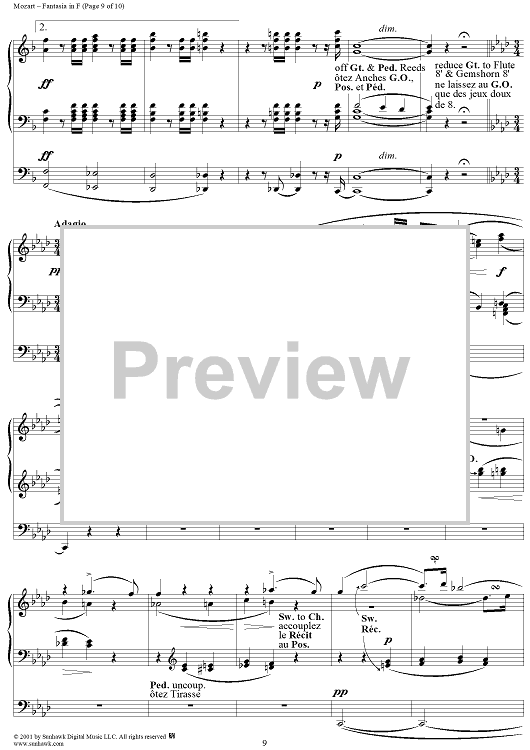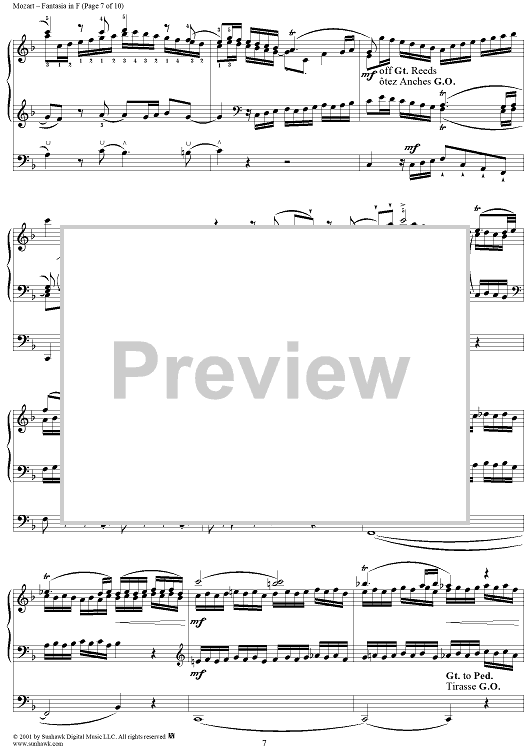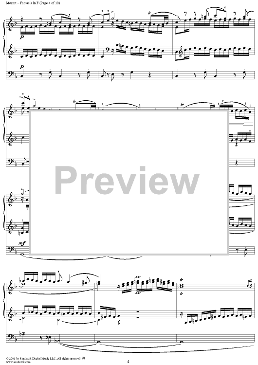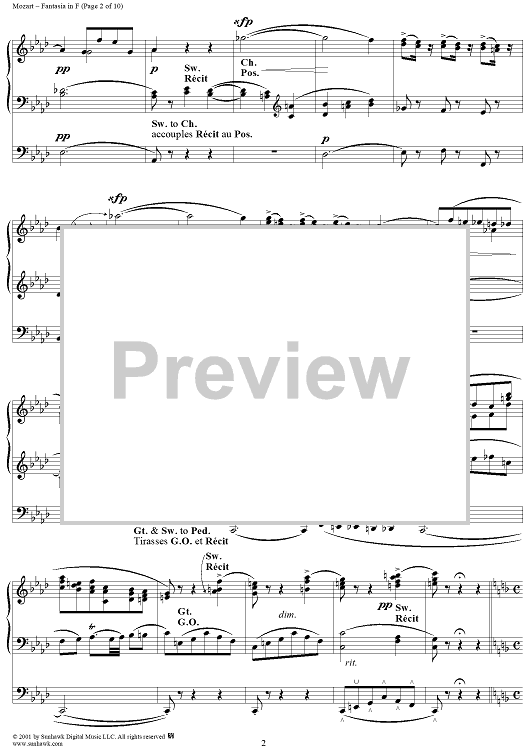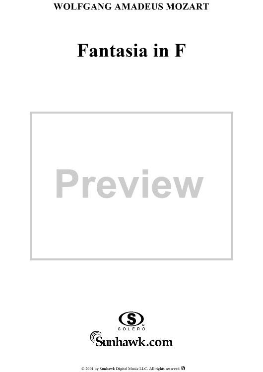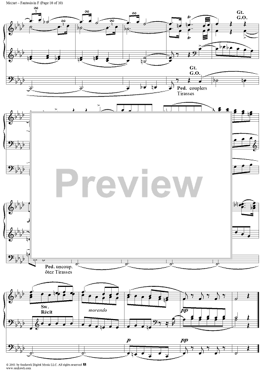 Digital Sheet Music for Fantasia in F, organ by Wolfgang Amadeus Mozart scored for Organ Solo; id:253038