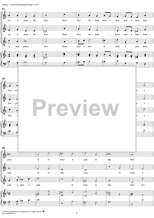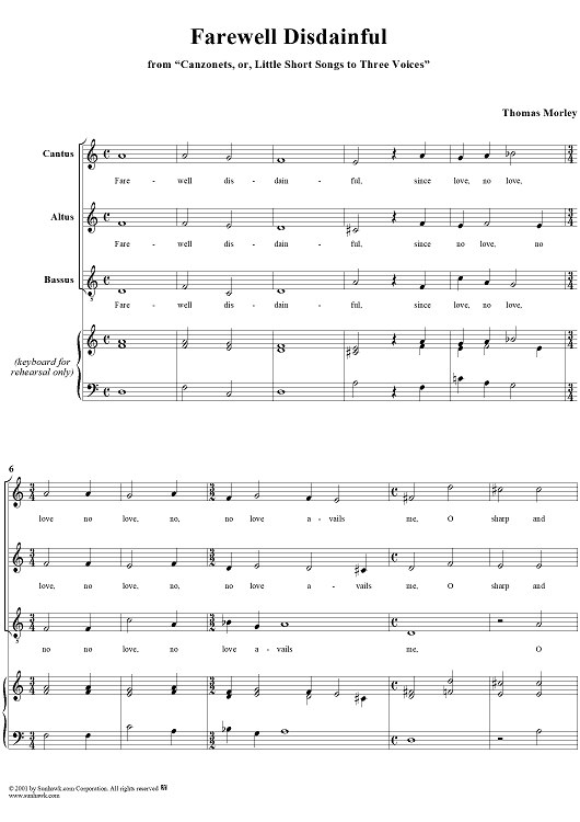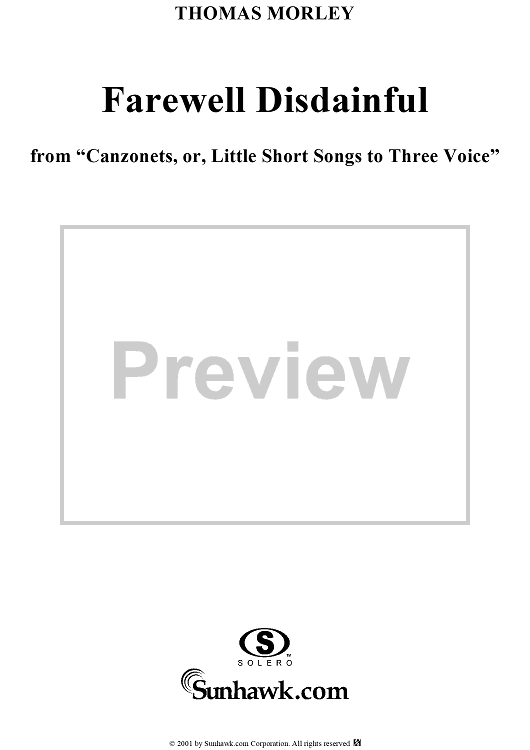 Digital Sheet Music for Farewell Disdainful by Thomas Morley scored for Three-part Mixed Chorus; id:259806