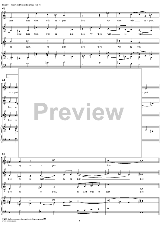 "Farewell Disdainful" Sheet Music by Thomas Morley