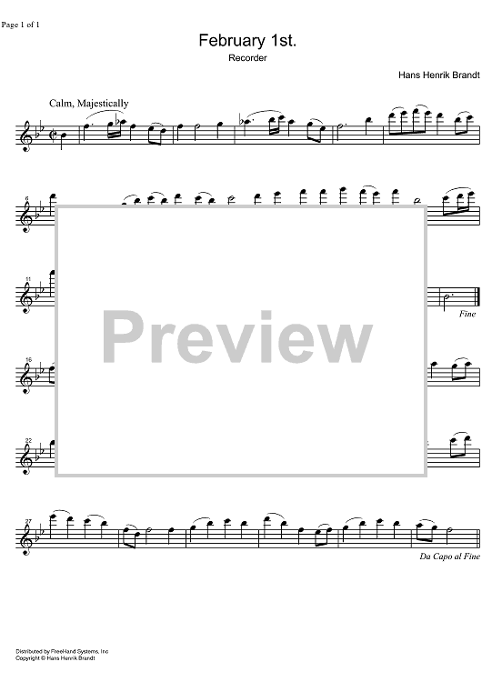 Digital Sheet Music for February 1st by , Hans Henrik Brandt scored for Recorder; id:329680