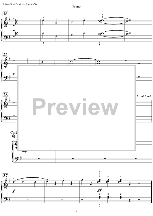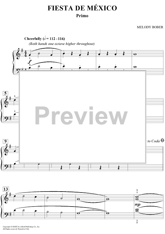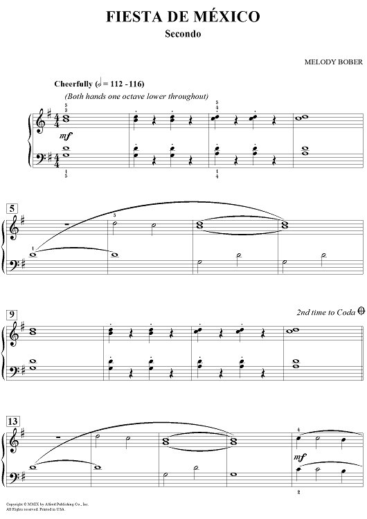 Digital Sheet Music for Fiesta de México by Melody Bober scored for 1 Piano, 4 Hands; id:464397