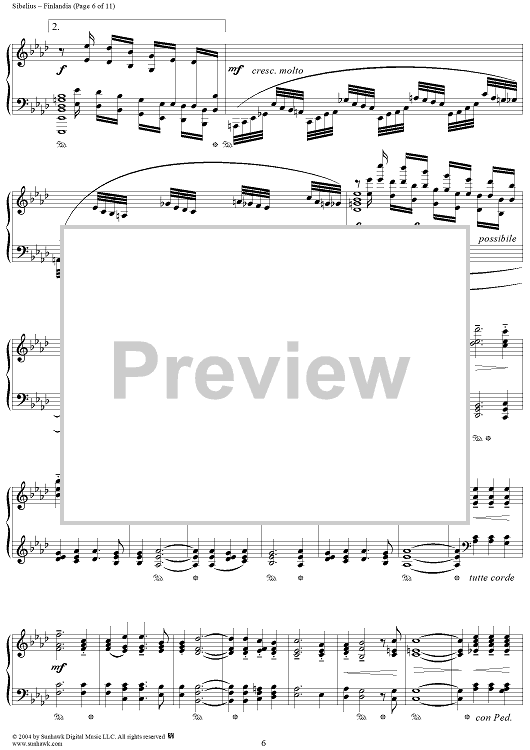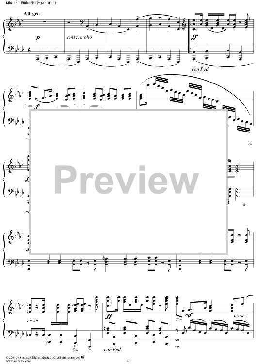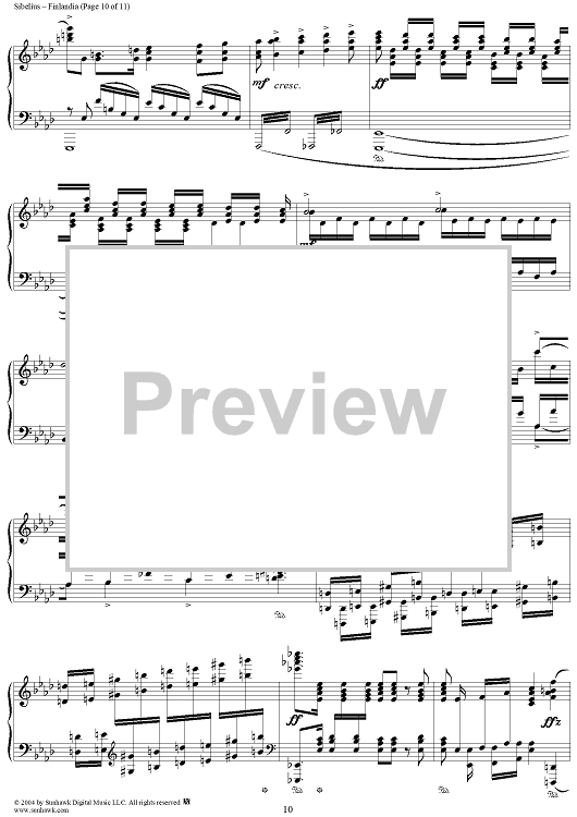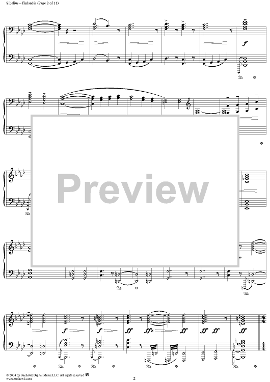 Digital Sheet Music for Finlandia (Op. 26, No. 7) by Jean Sibelius scored for Piano Solo; id:296372