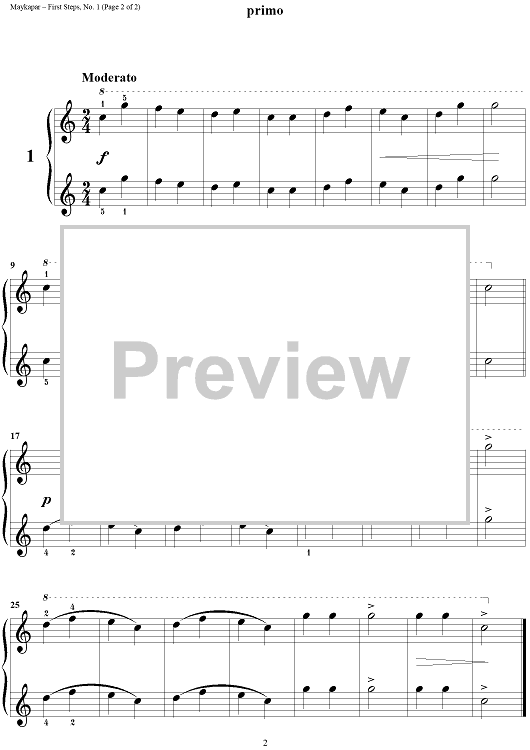 Digital Sheet Music for First Steps, No. 1 by , Samuel Maykapar scored for 1 Piano, 4 Hands; id:365218