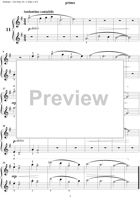 Digital Sheet Music for First Steps, No. 11 by , Samuel Maykapar scored for 1 Piano, 4 Hands; id:365233