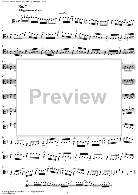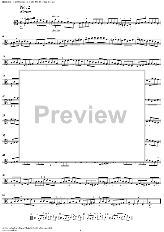 Digital Sheet Music for First Studies for Viola, Op. 86 by Richard Hoffman scored for Viola Studies; id:303783