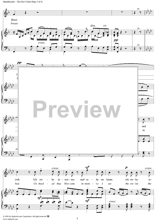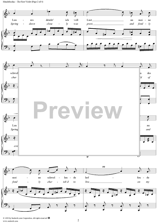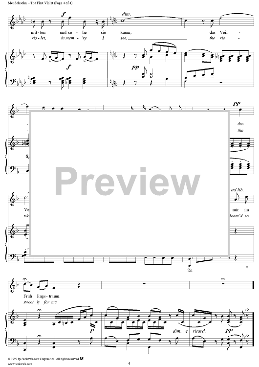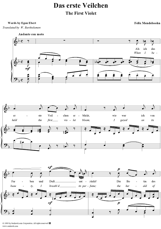 Digital Sheet Music for First Violet, The (Das erste Veilchen) by Felix Mendelssohn, W. Bartholomew scored for Voice/Piano; id:252009
