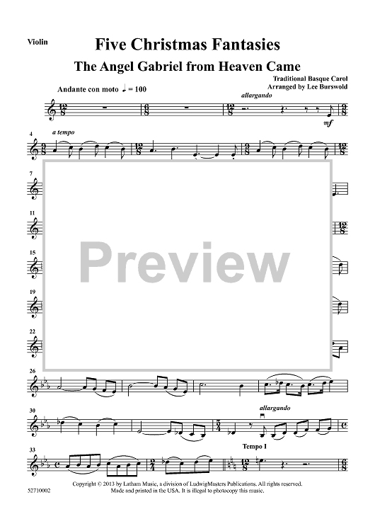 "Five Christmas Fantasies for Violin and Piano" Sheet Music by Various