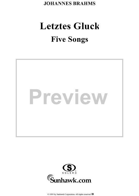 "Five Songs, Op. 104, No. 3, Letztes Gluck" Sheet Music by Johannes Brahms