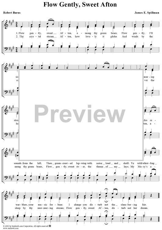 Digital Sheet Music for Flow Gently, Sweet Afton by Robert Burns, Jonathan E. Spilman scored for Four-part Mixed Chorus; id:255424