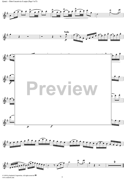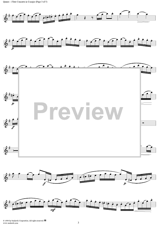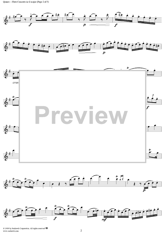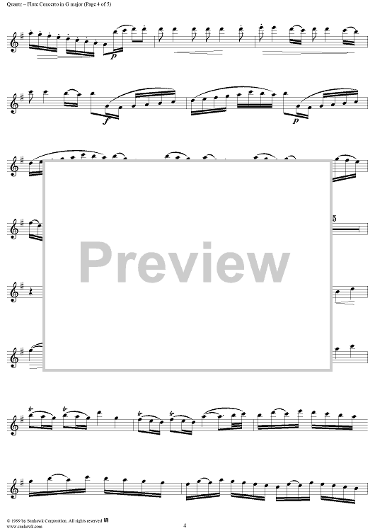 Digital Sheet Music for Flute Concerto in G Major, Allegro - Flute by Johann Joachim Quantz scored for Flute/Piano; id:255408