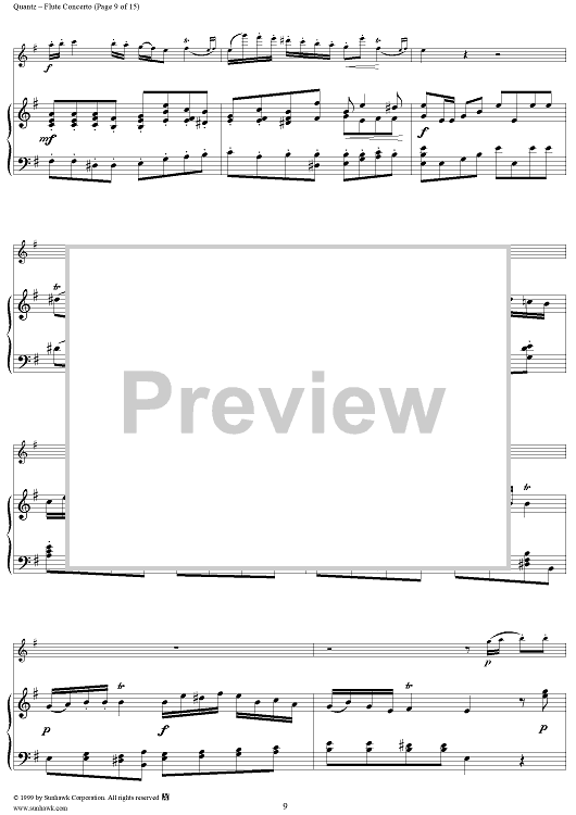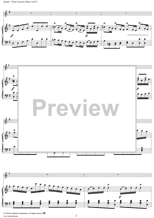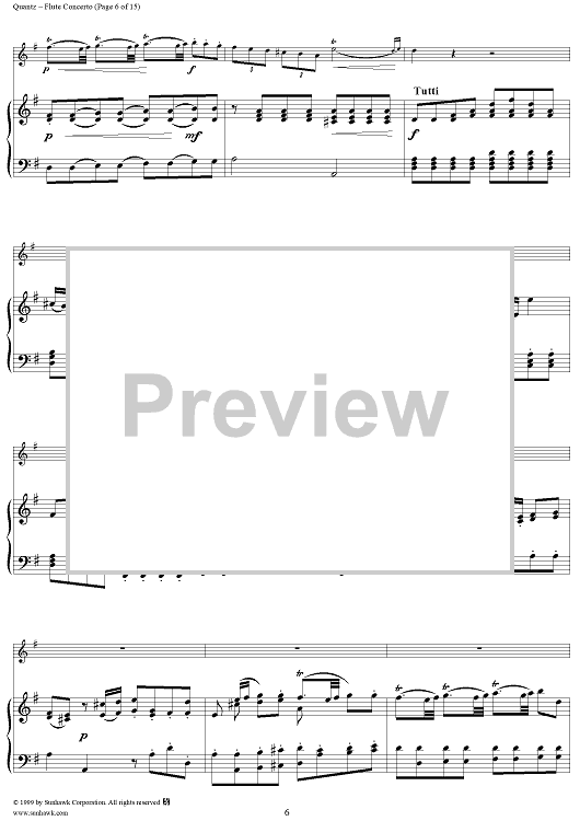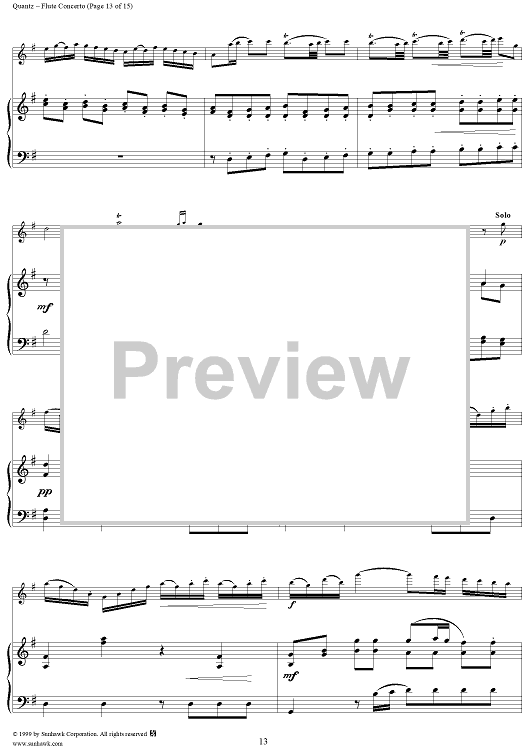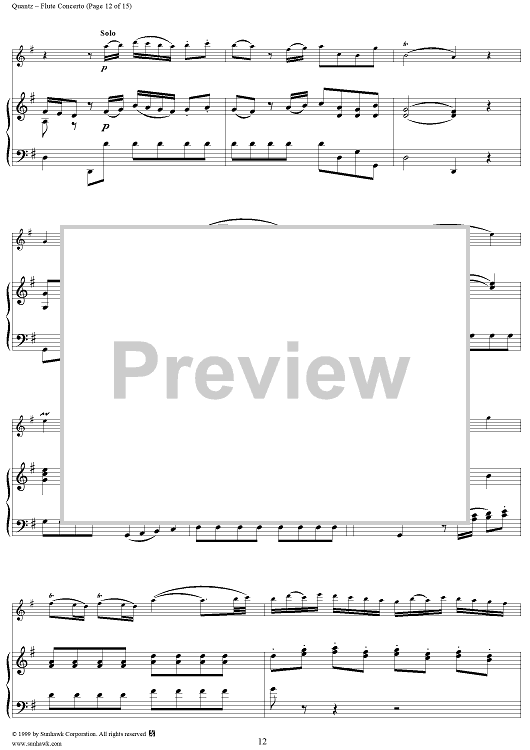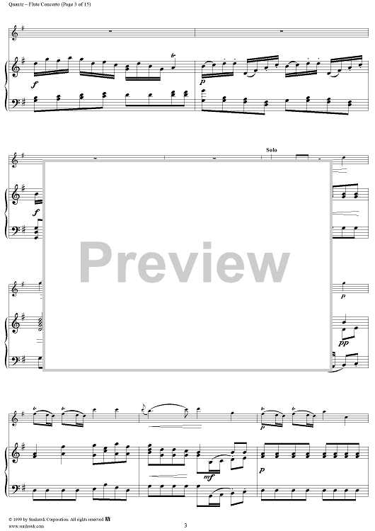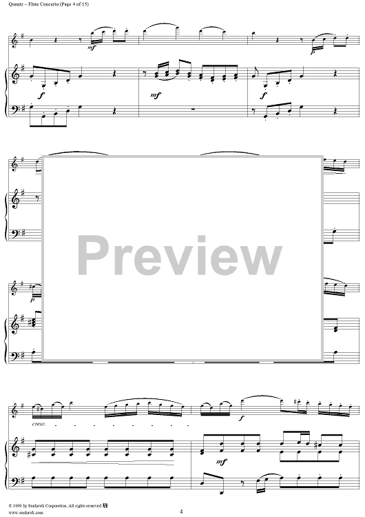 Digital Sheet Music for Flute Concerto in G Major, Allegro - Piano by Johann Joachim Quantz scored for Flute/Piano; id:255406