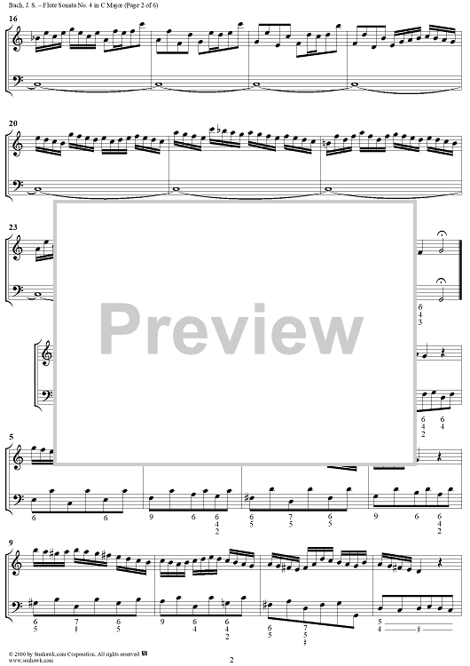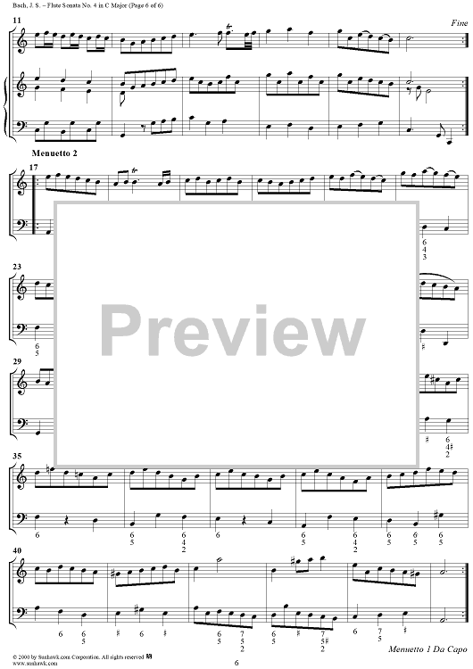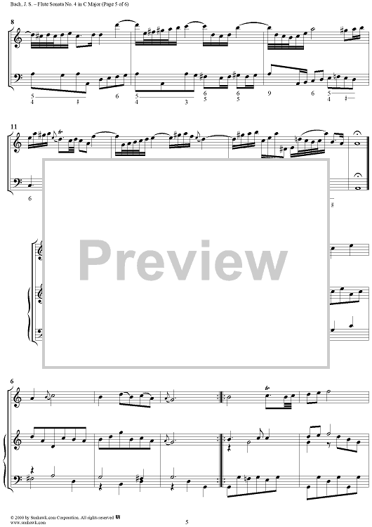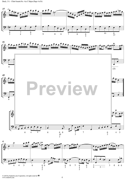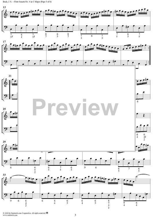 Digital Sheet Music for Flute Sonata no. 4 in C major (BWV1033) by Johann Sebastian Bach scored for Flute/Piano; id:225180