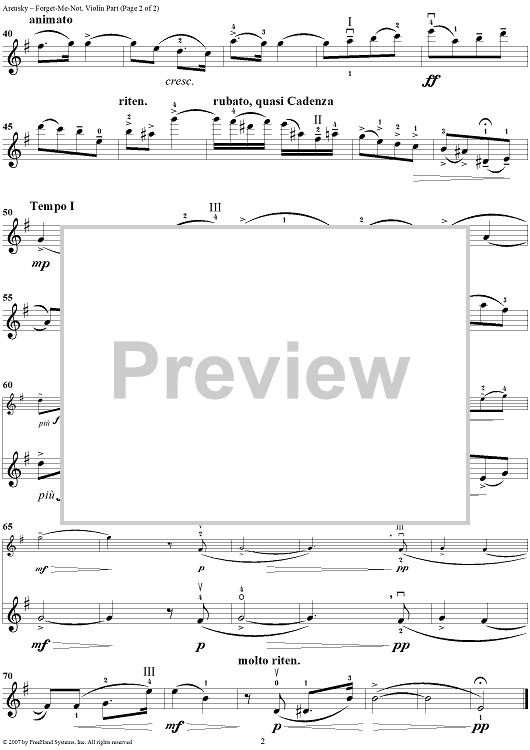 "Forget-Me-Not - Violin" Sheet Music by Anton Arensky