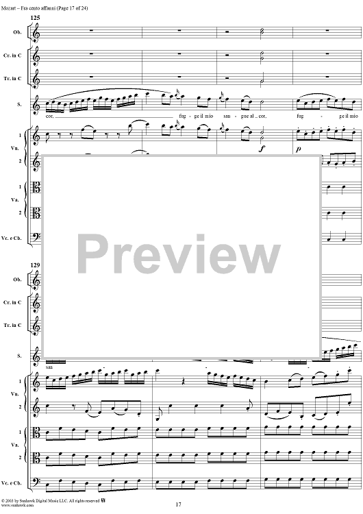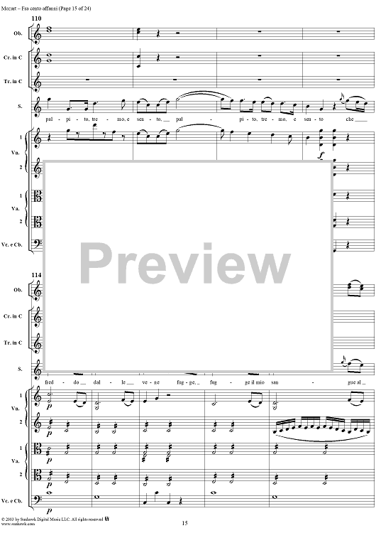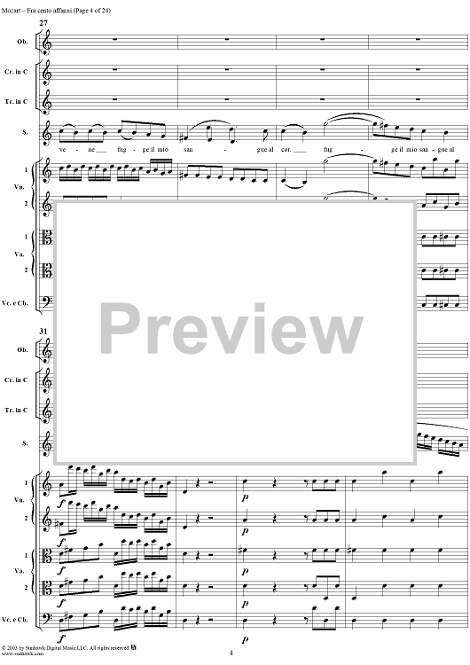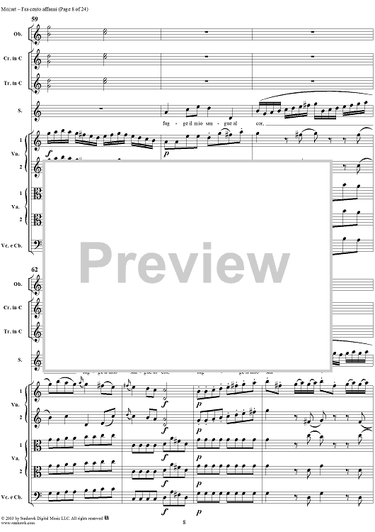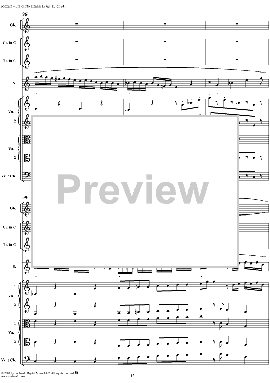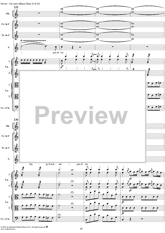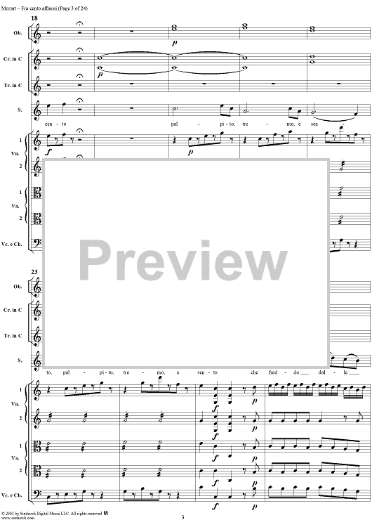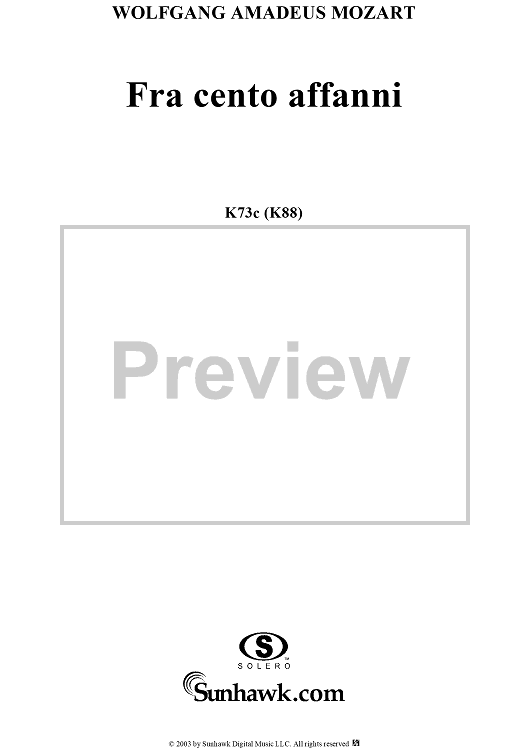 Digital Sheet Music for "Fra cento affanni", aria, K73c (K88) - Full Score by Wolfgang Amadeus Mozart scored for Soprano/Orchestra; id:292275