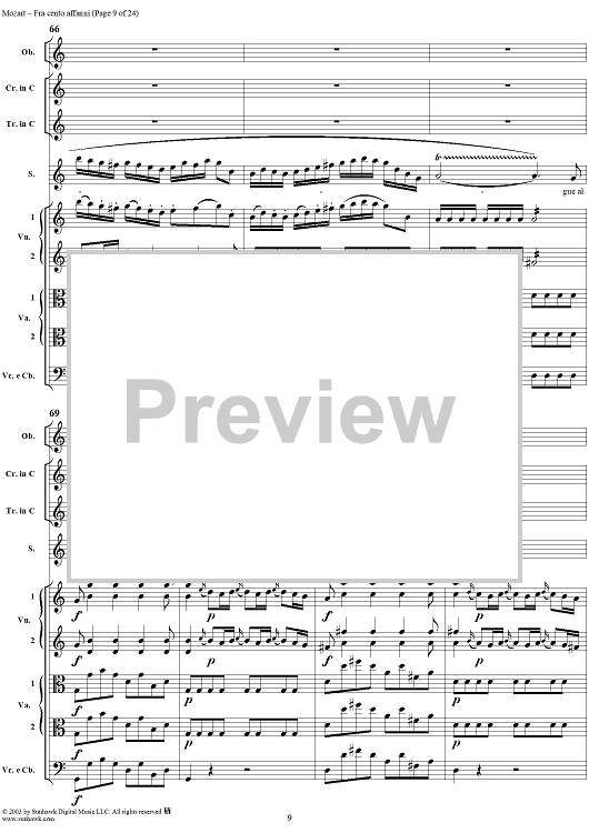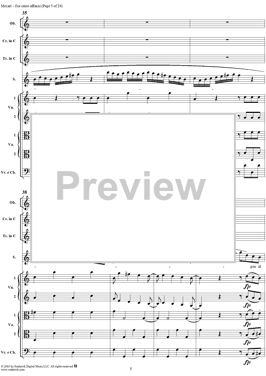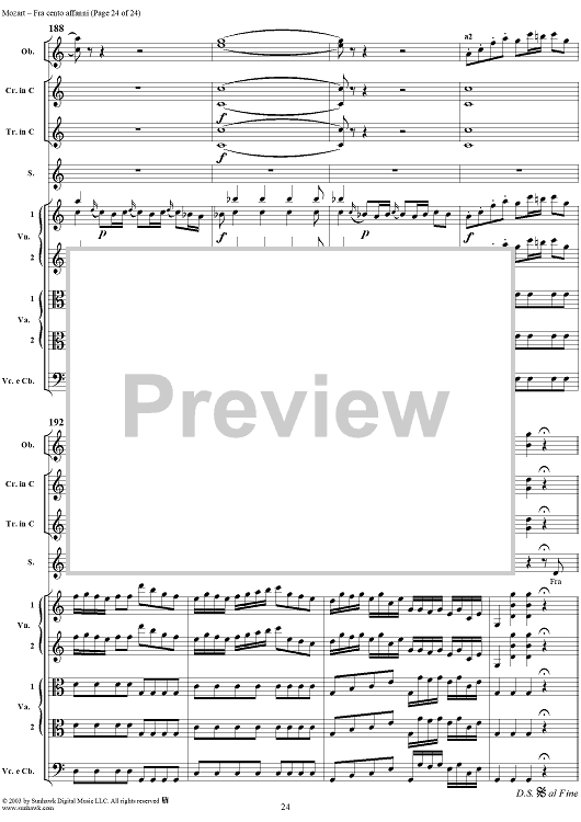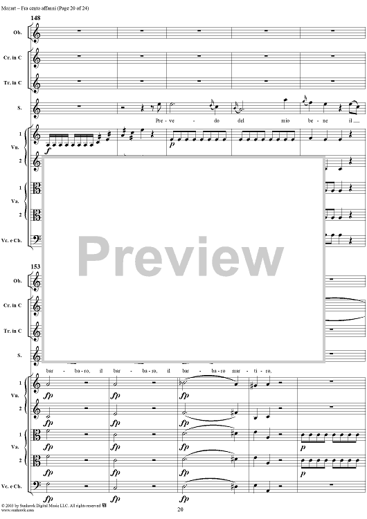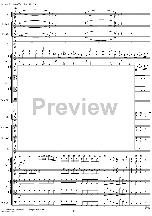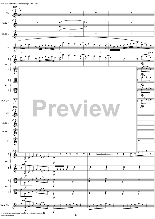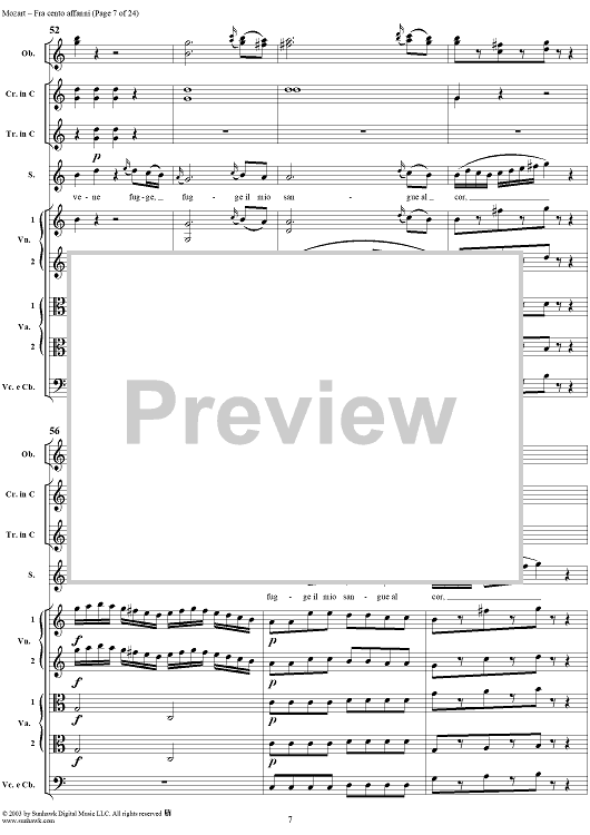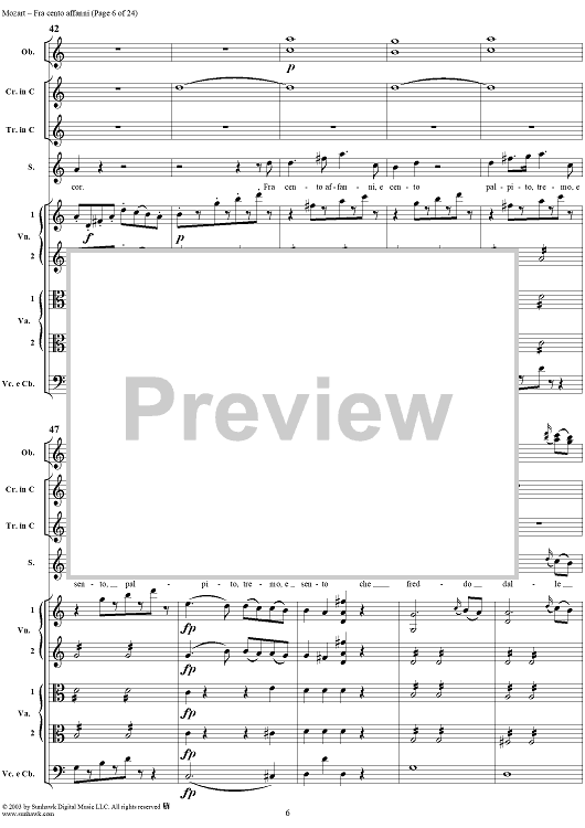 Digital Sheet Music for "Fra cento affanni", aria, K73c (K88) - Full Score by Wolfgang Amadeus Mozart scored for Soprano/Orchestra; id:292275