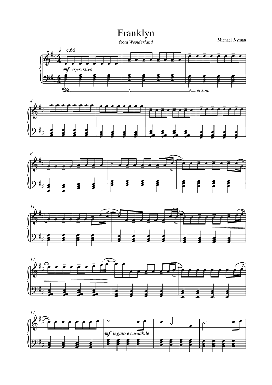 Digital Sheet Music for Franklyn by Michael Nyman scored for Piano; id:382559