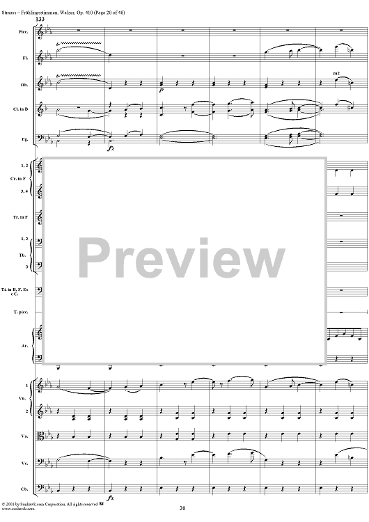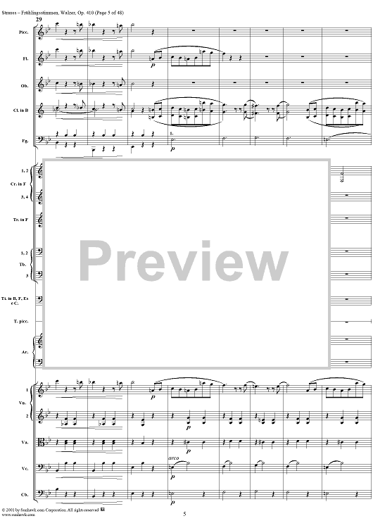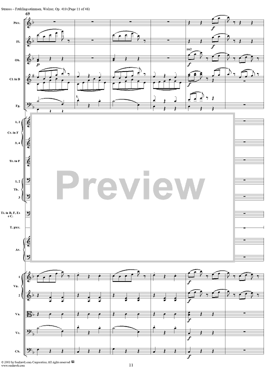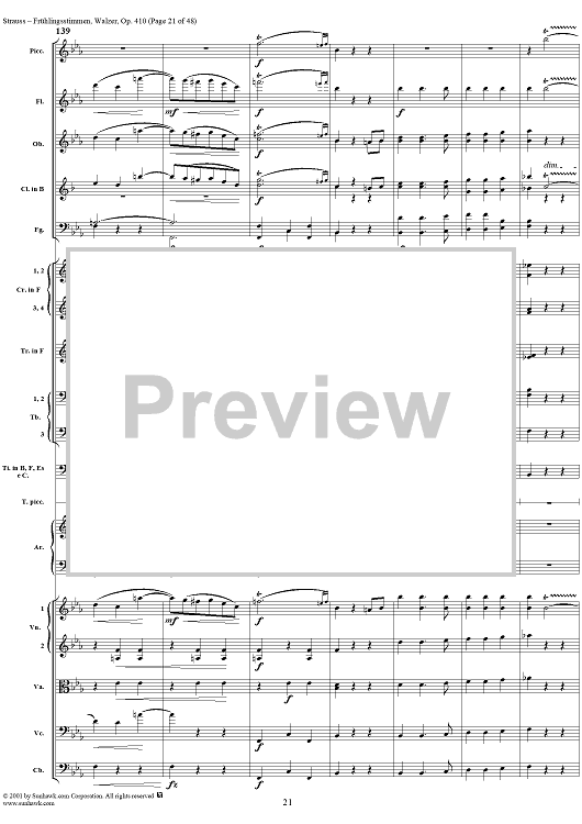 Digital Sheet Music for Frühlingsstimmen (Voices of Spring), Op. 410 by Johann Strauss II scored for Orchestra; id:265239